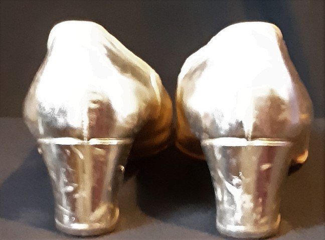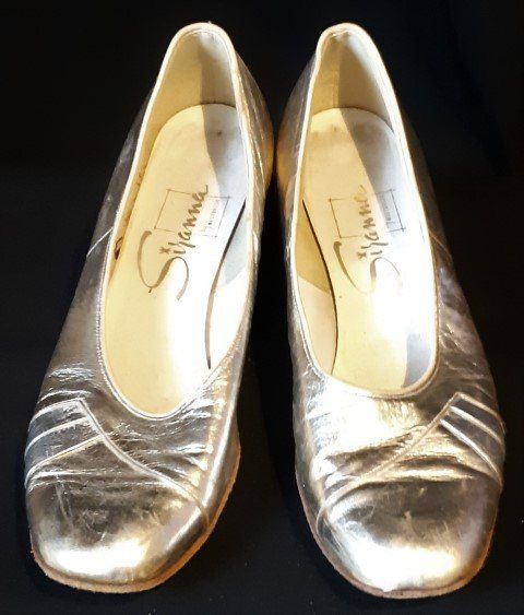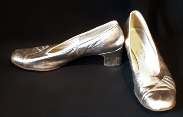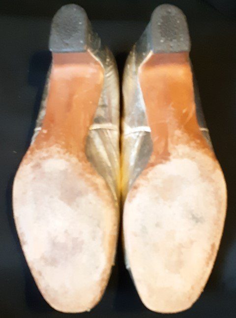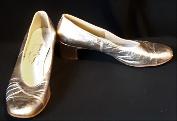 Gold Patent leather shoe, 1960’s, by ‘Westbrook’. The name of the shoe is Siranna, so cool! I can just see Samantha’s cousin from Bewitched wearing them!