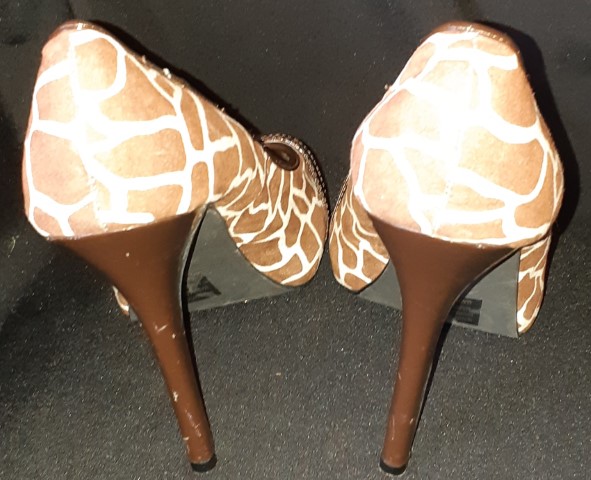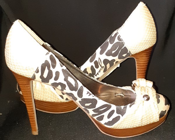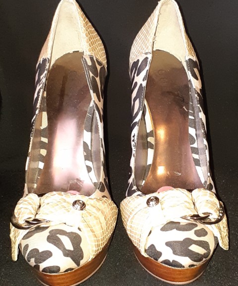 ‘Guess’ platform high heel, the leopard print is fabric, the rest is leather snakeskin, excellent condition.