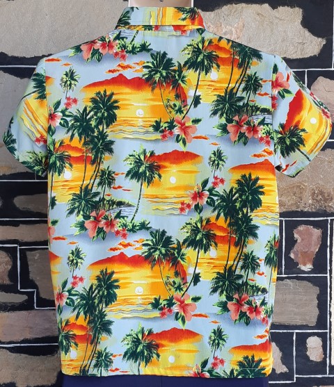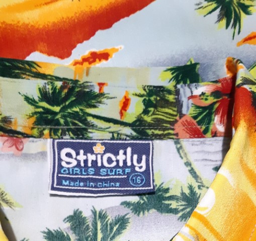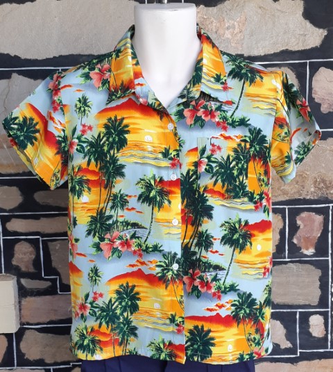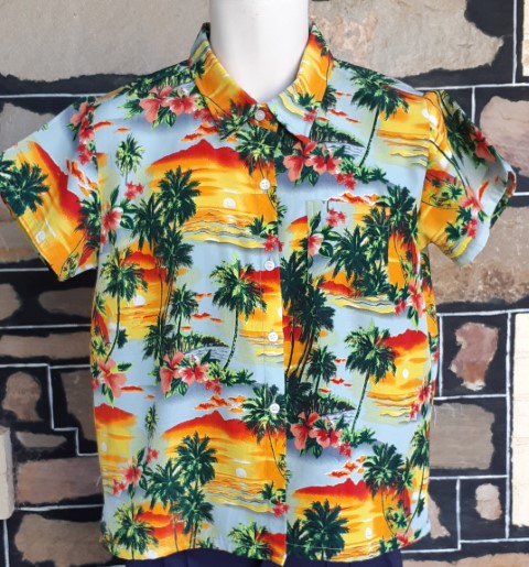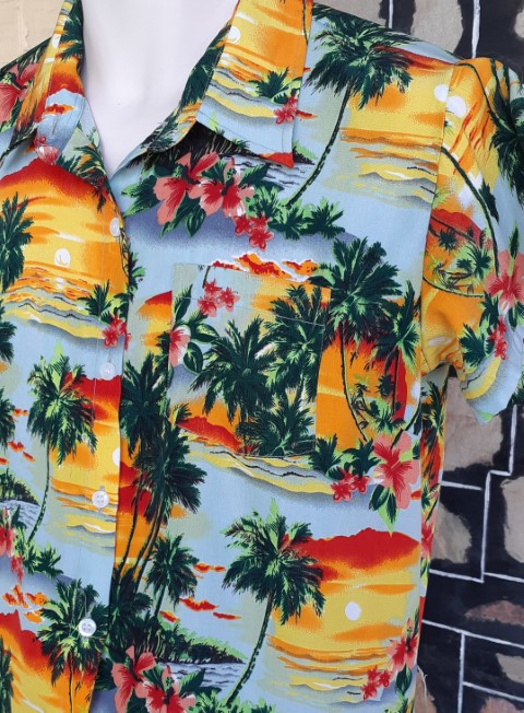 Hawaiian Shirt, Island Print, polyester, by ‘Strictly Girls Surf’, size S, unisex fit.