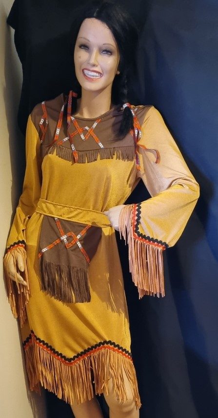 Indigenous Native American Costume, Dress with Wig, Gold, polyester, by ‘Costume Collection’, size 12