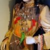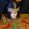 Indigenous Native American Headpiece, cuff and a beaded necklace, canvas, feathers, and plastic, by’ Sweidas Costumes’ 3 pieces in total.