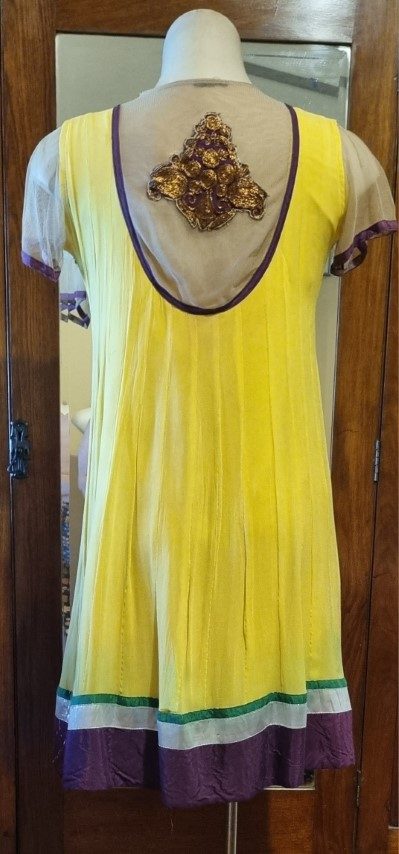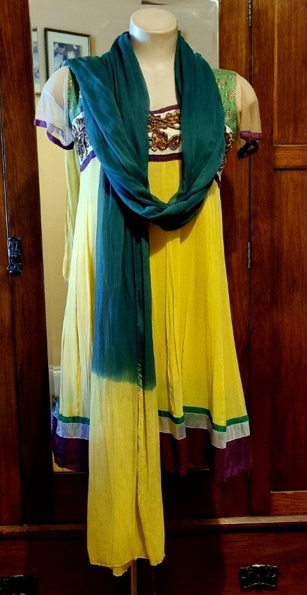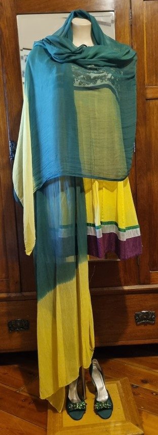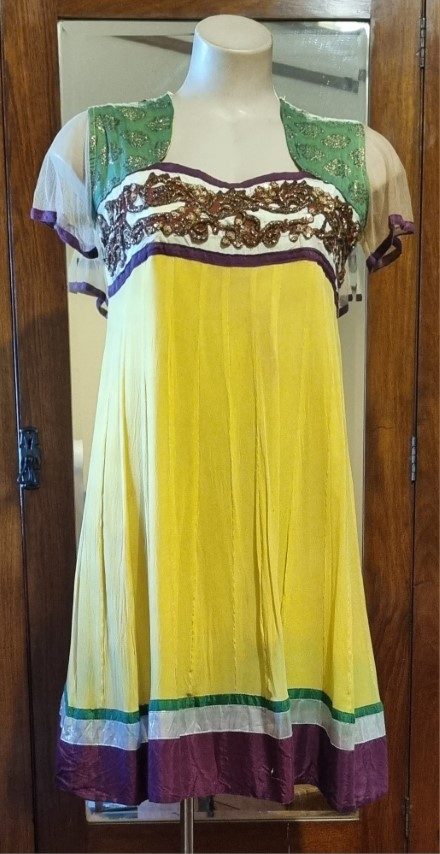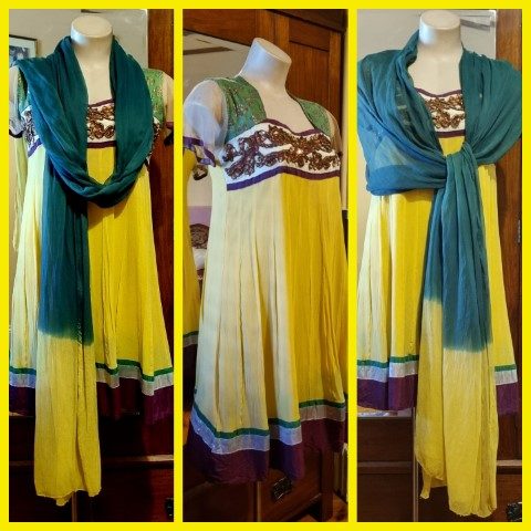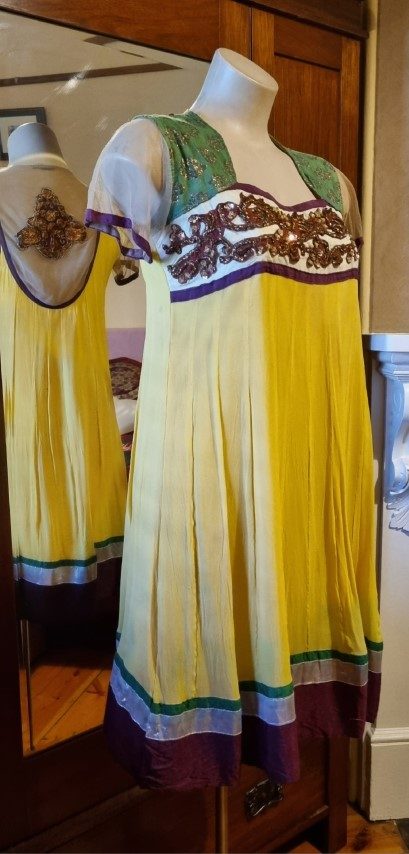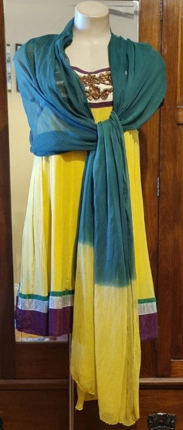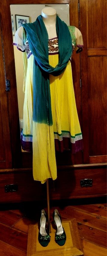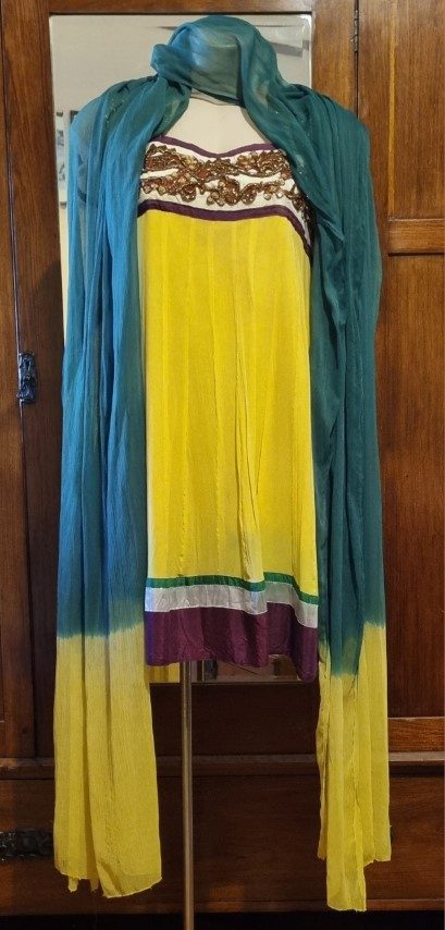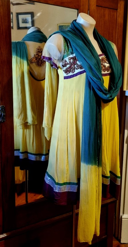 Indian Kameez, tunic dress, with shawl, yellow, Made in Fiji, Size