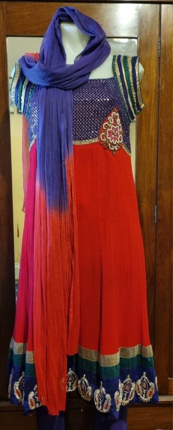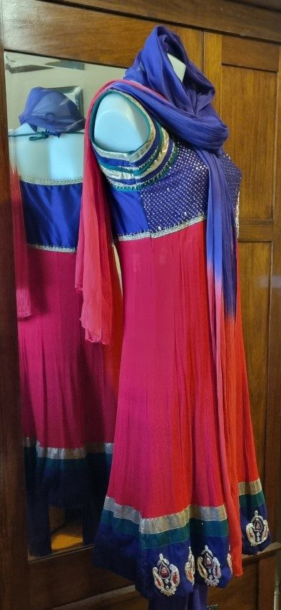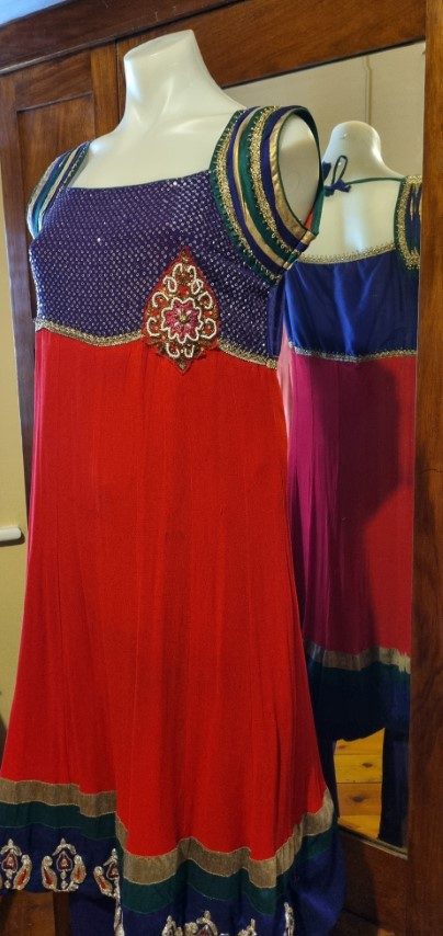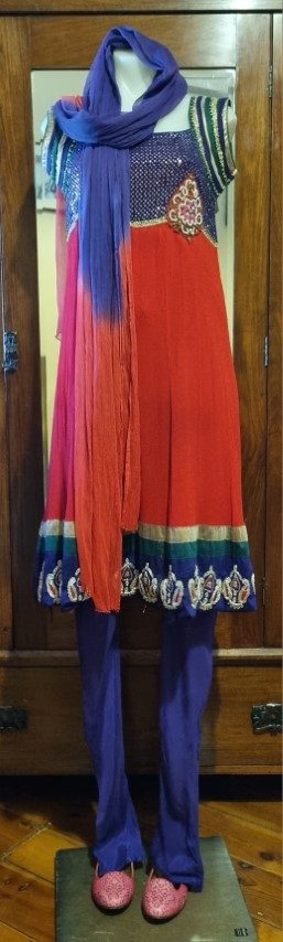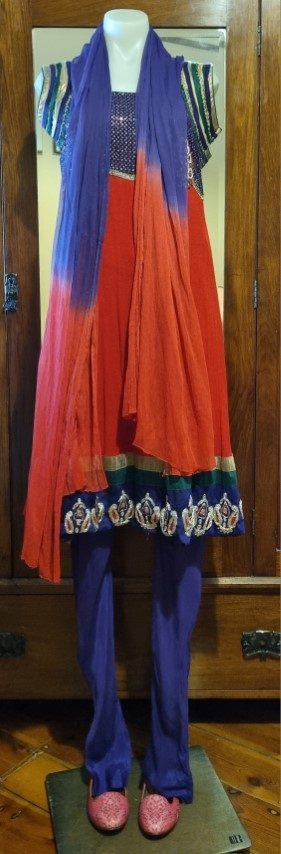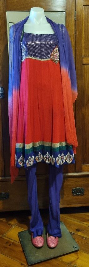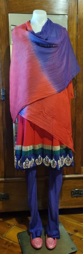 Indian Salwar Kameez and Shawl, Silk/nylon/polyester, Made in Fiji, size 8-10