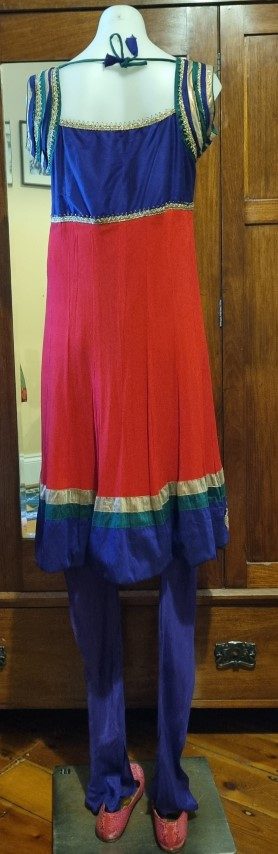 The suit can be worn separately, eg, the dress, or the Kameez, on its own, with the shawl, or with the pants, pyjama style, with a cord to pull them in, these are called salwar.