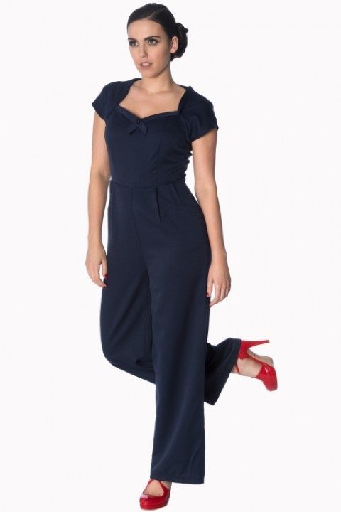 Jumpsuit, 40’s inspired, Black, polyester, by ‘Banned Apparel’ (last one XS)
