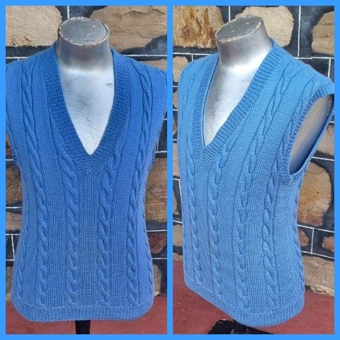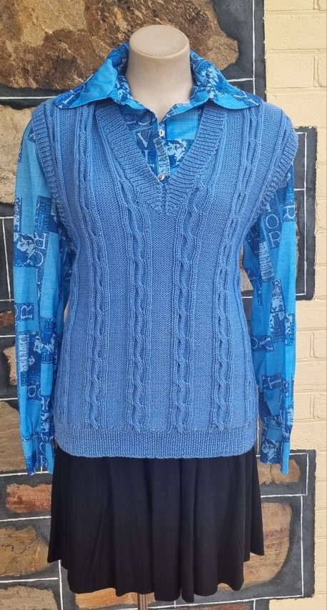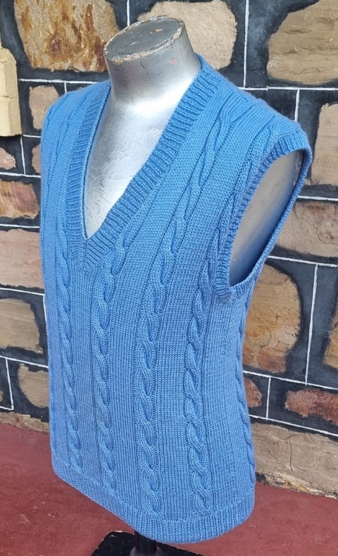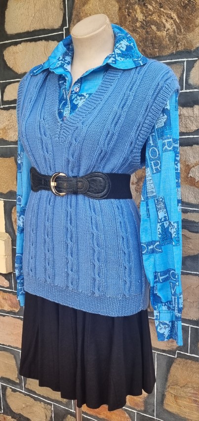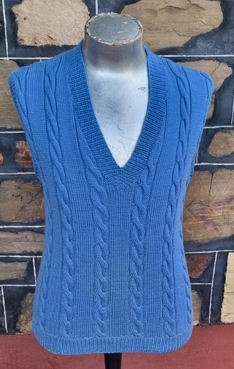 Knitted Vest, Cornflower Blue, Acrylic, size M.