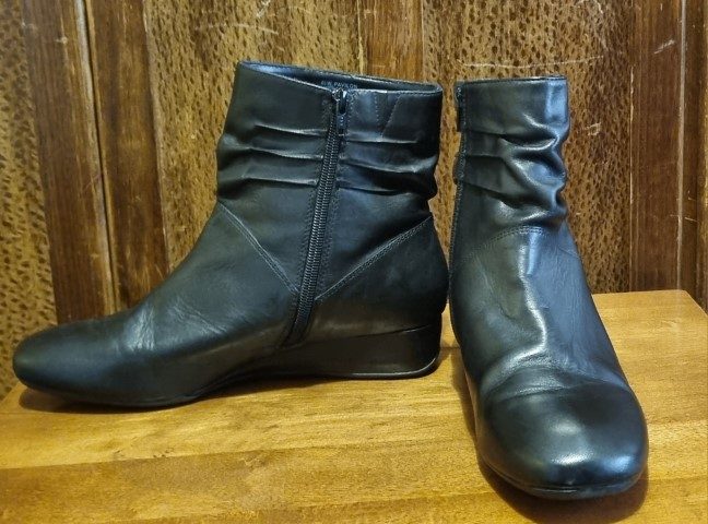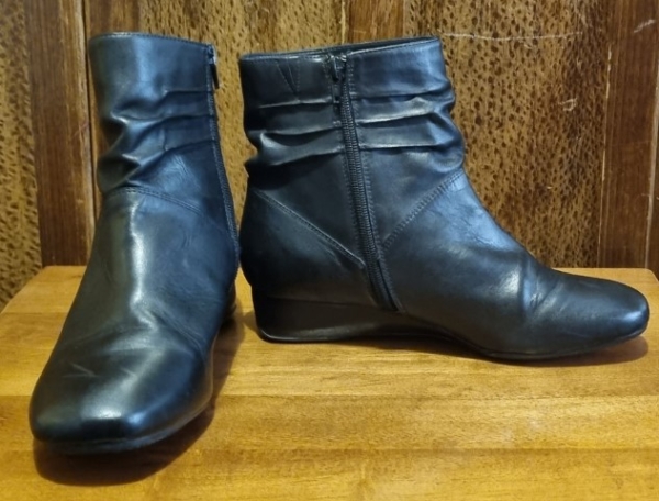 Ladies ankle boots, Leather, Black, by ‘Wide Steps’, size 8.5