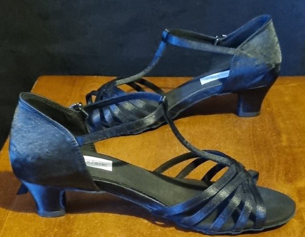 Ladies Peep Toe, T-bar, Satin, Dance Shoe, by ‘My JuJu Dance’, black, size 39, new