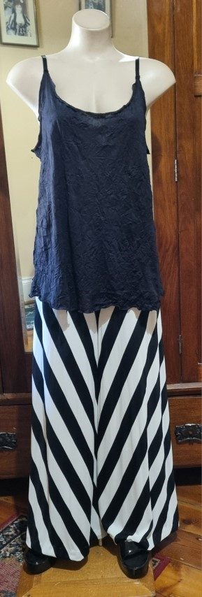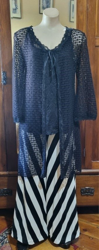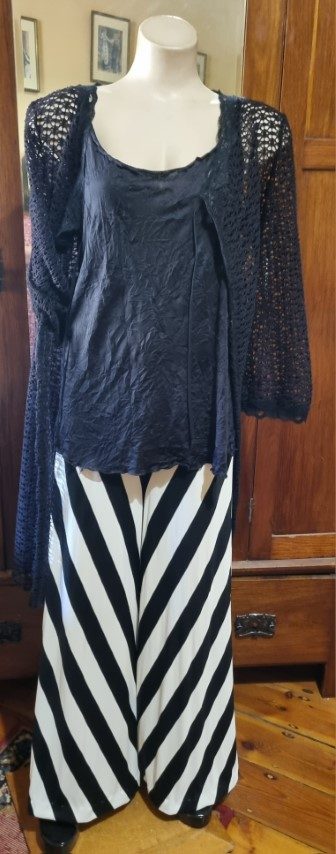 Cool isn’t it? The perfect cover-up cardi with loose fitting singlet top. In the gallery photos, I have shown it with our fab striped flares, these are not included.