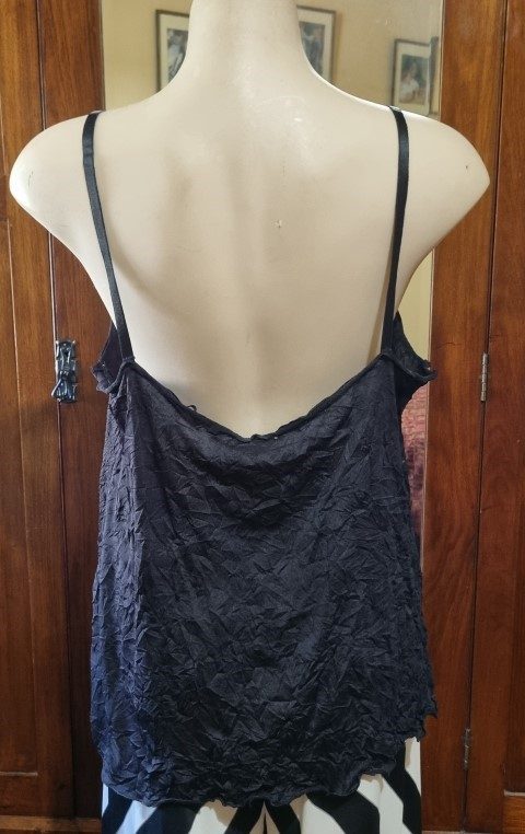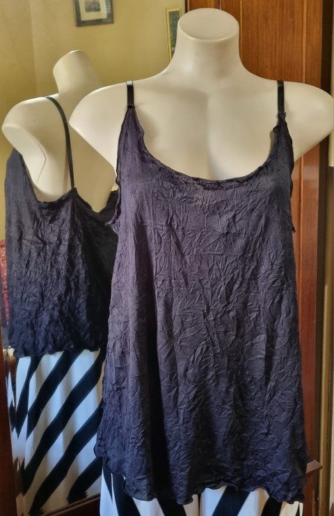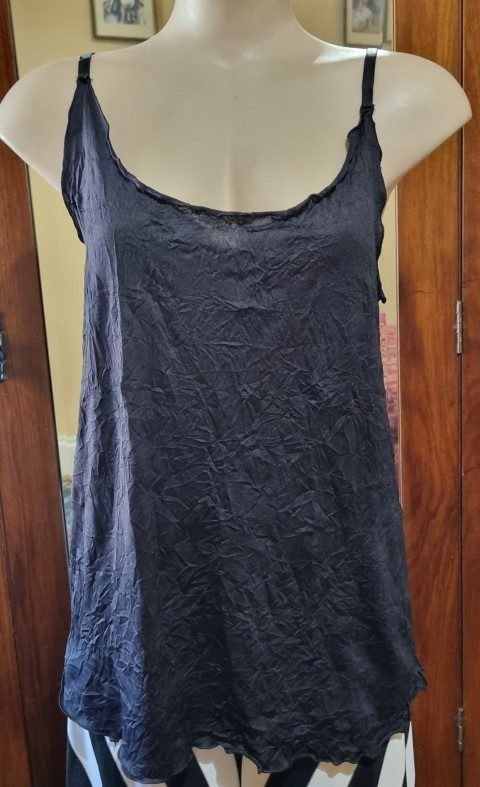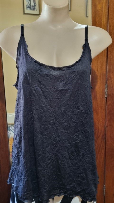 In a flat lay the singlet top measures, bust 102cm, waist 106cm, hips 120cm and the length is 73cm.