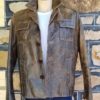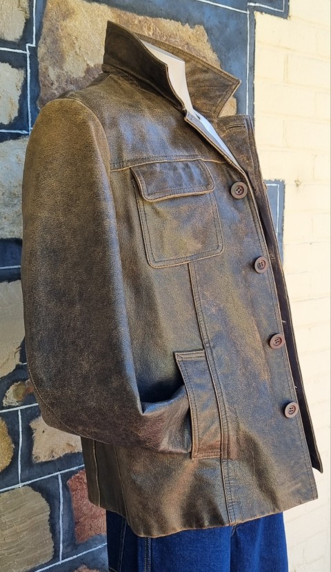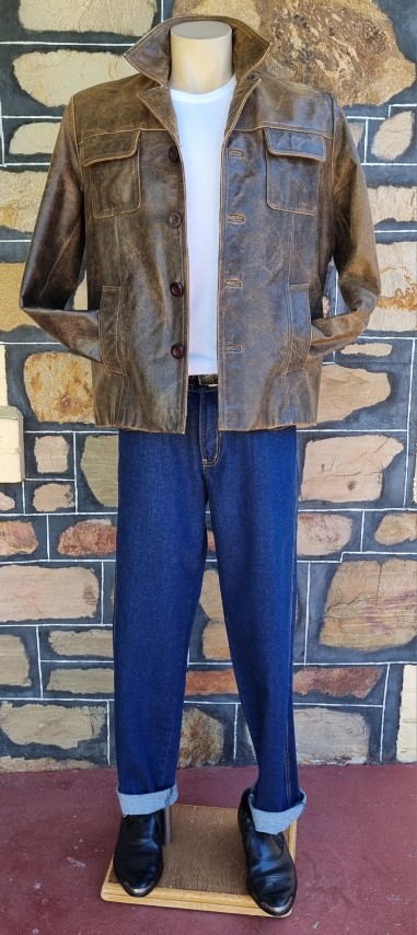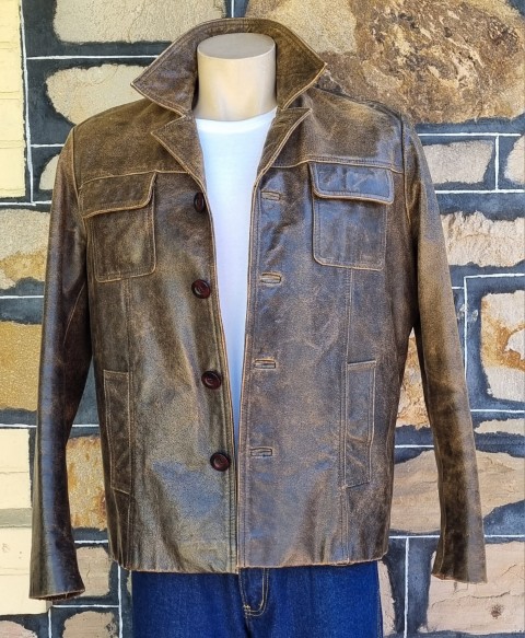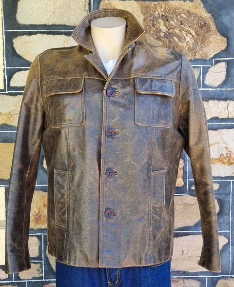 Men’s Distressed Leather Jacket, Vintage inspired, Brown, size M