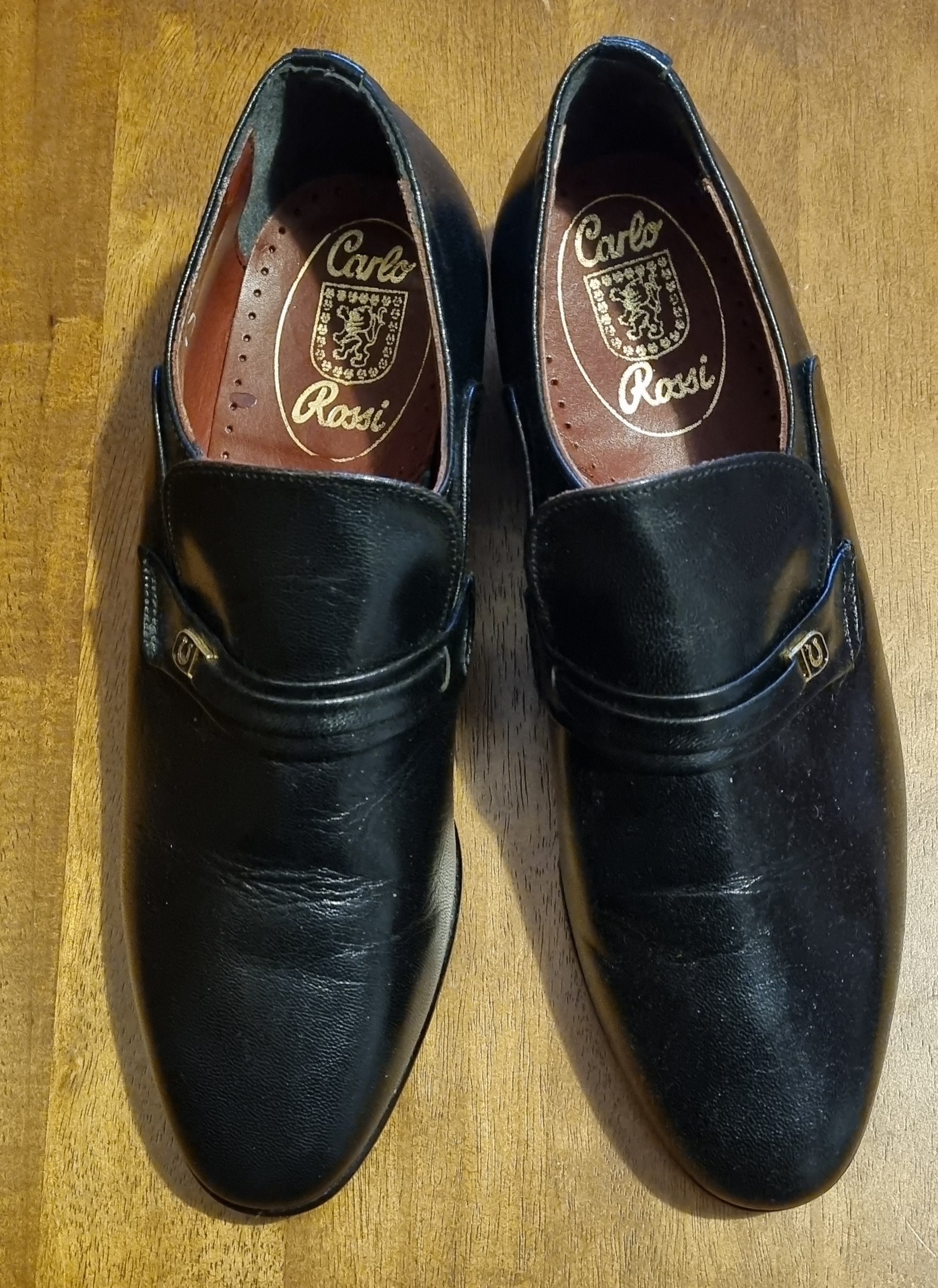 Men’s Loafers, Black Leather, by ‘Carlo Rossi’, 1990’s, size 7
