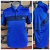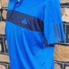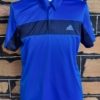 Men’s Retro Tennis Polo Top, by ‘Adidas’, blue/black, polyester, ‘Climalite’, size L, 3 stripes on sleeves.