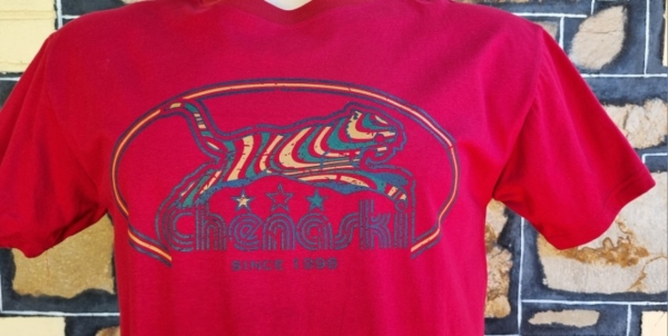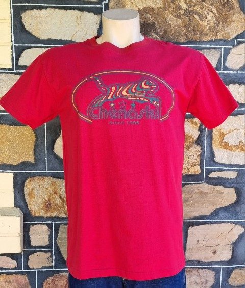 Men’s Round Neck Tee, red, by ‘Chenaski’, cotton.