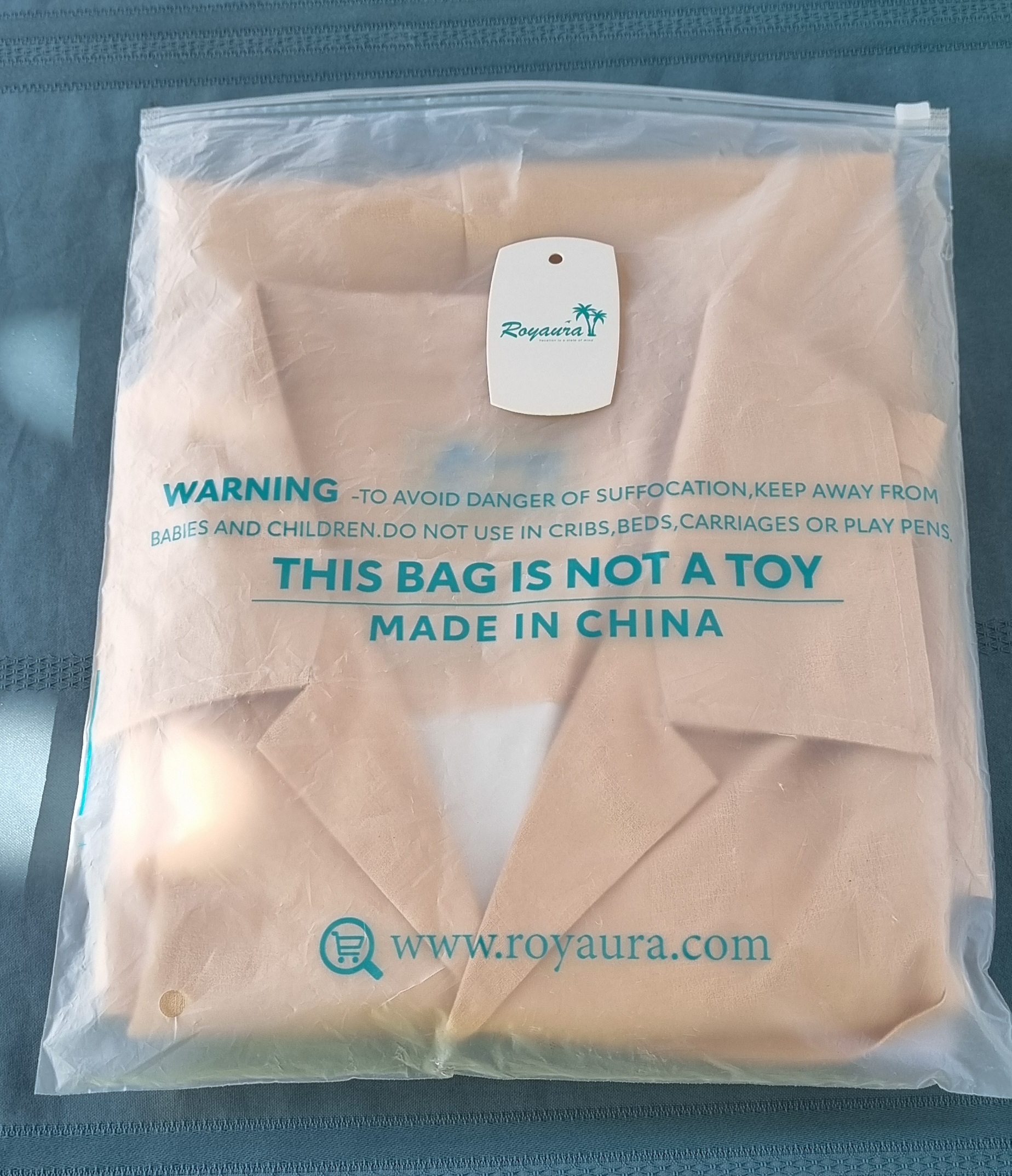 The label is great, it reads ‘Vacation is a state of mind’ :) The fabric is polyester, and what almost looks like lining, so brillant.