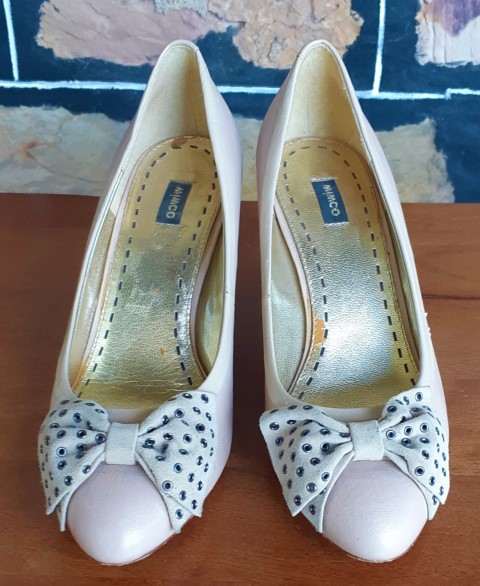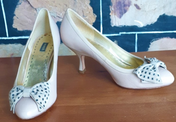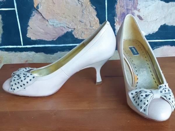 Mimco’ Bone Court shoes, leather, suede bow trim, size 38