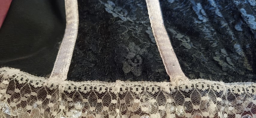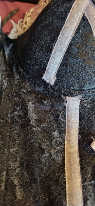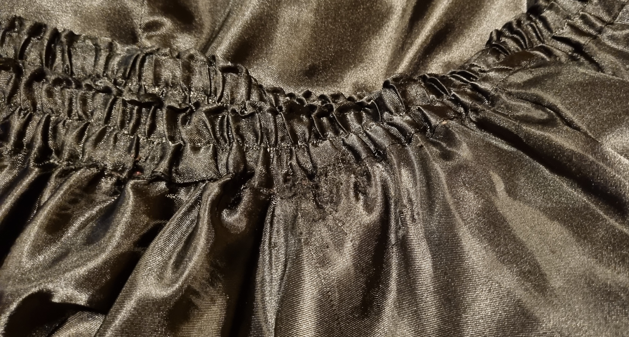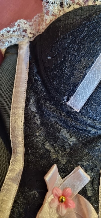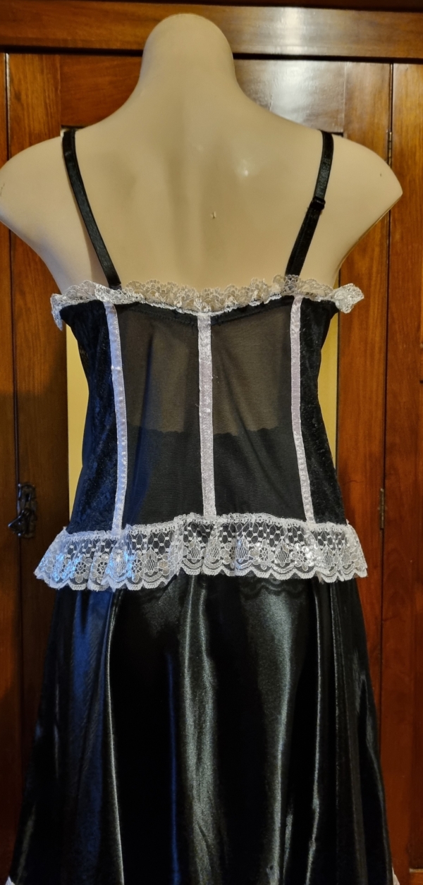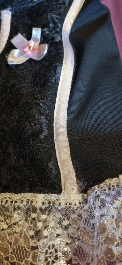 This pre-loved outfit has been reduced because there are a few areas of the white ribbon trim that are showing some wear and the waist of the skirt has been mended where this occurred too. However, to use as a costume, it is great! Please see all the photos attached.