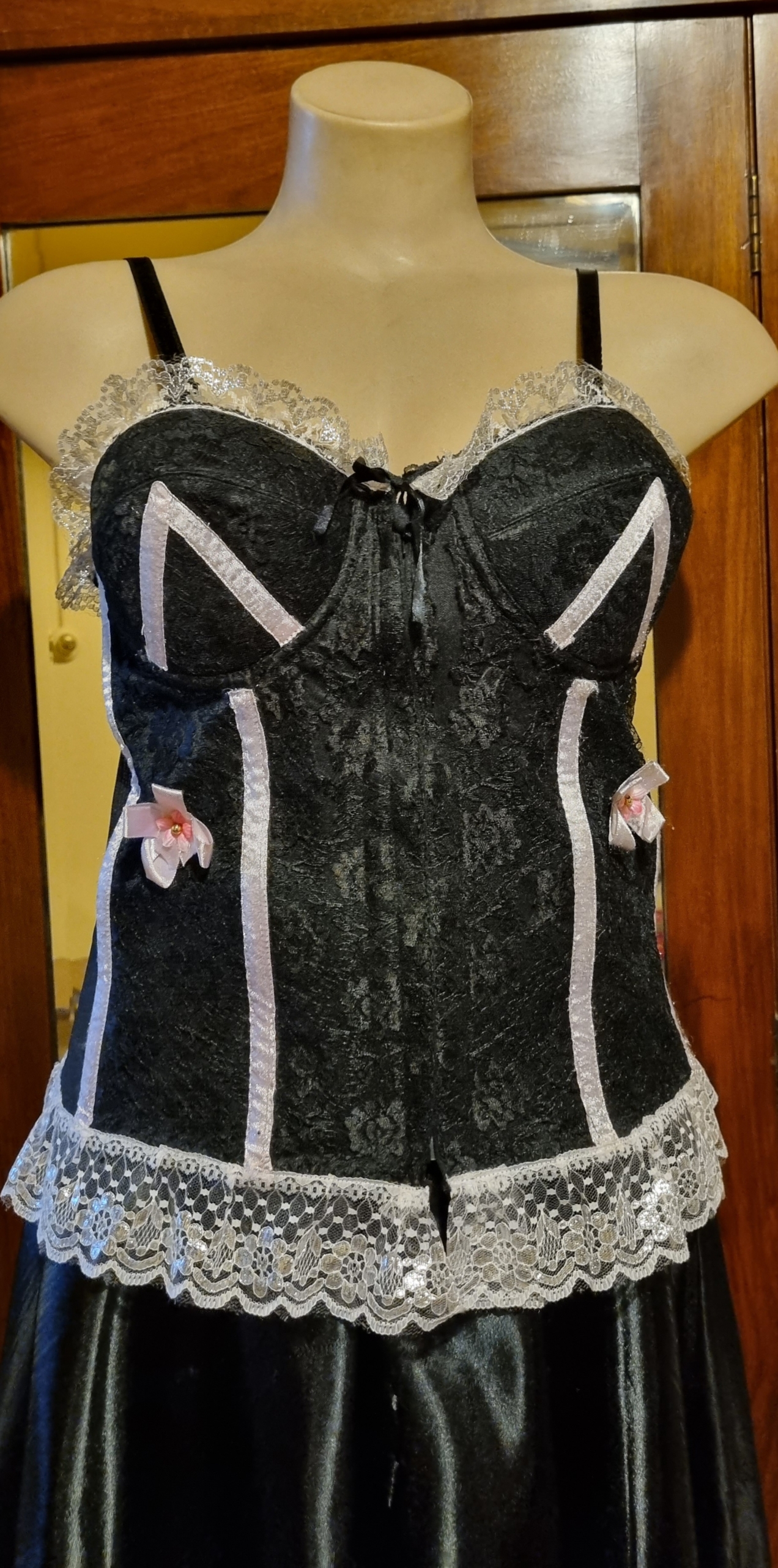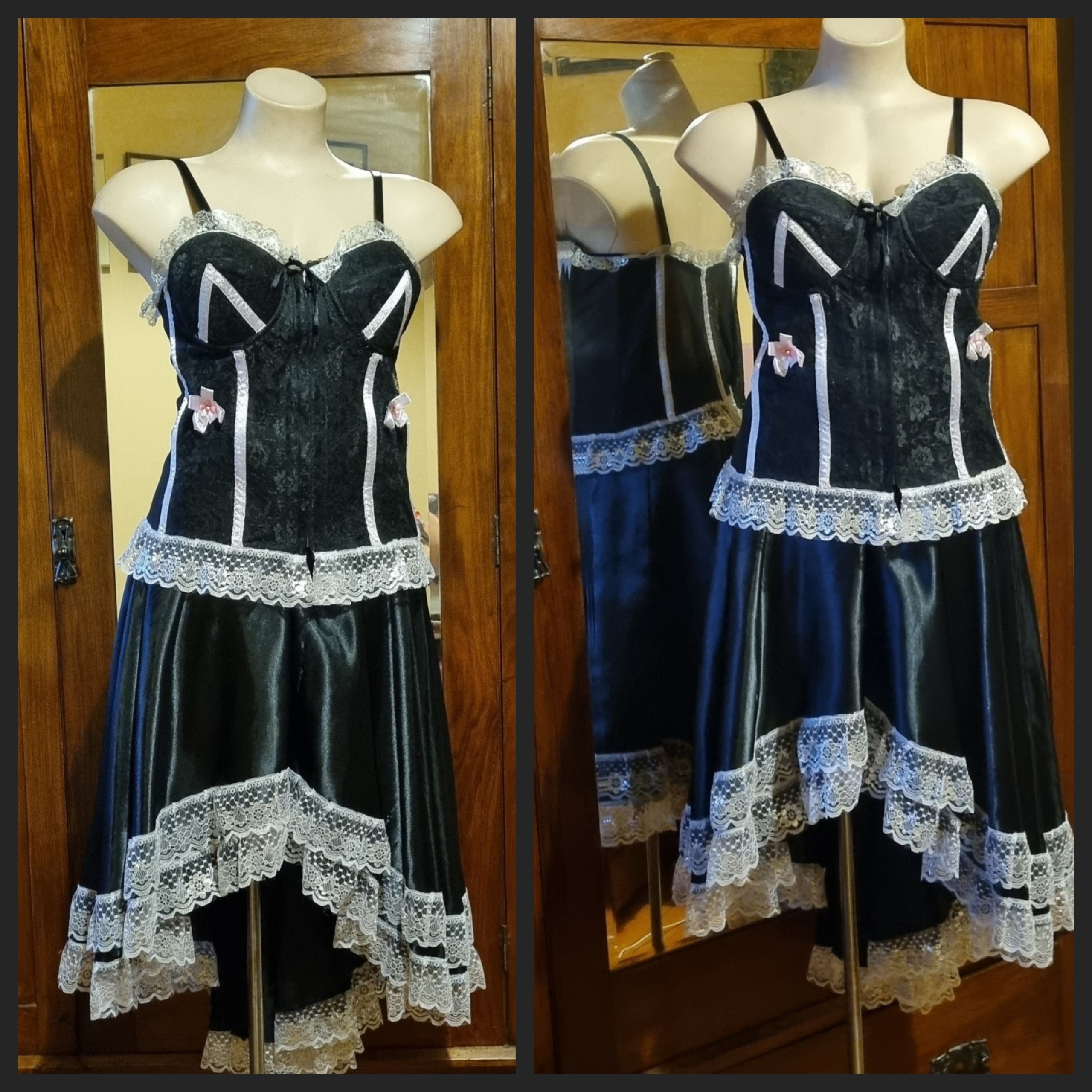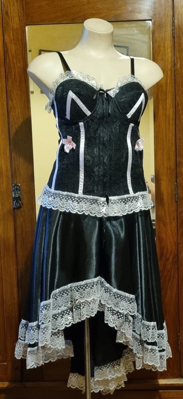 ‘Moulin Rouge’ Bustier & skirt, Black, polyester, by ‘Queensland Costume Supplies’, size 14-16