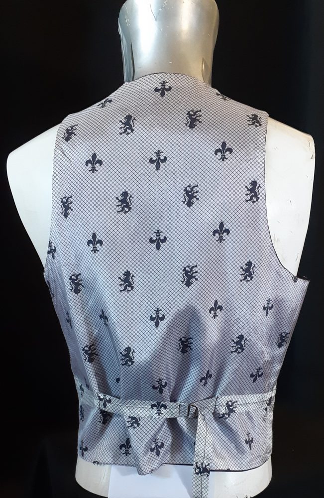 Chest is 38″, waist is 36″, length from nape of neck to tip of vest is 23.5″