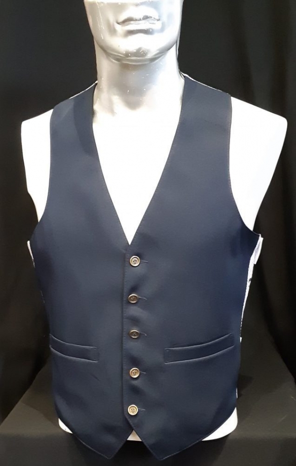 Navy gaberdine waistcoat with brass buttons, 1970’s, imported from USA.