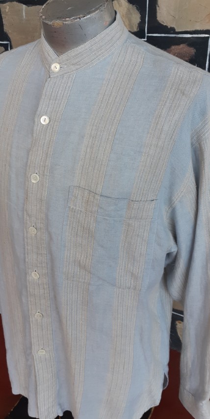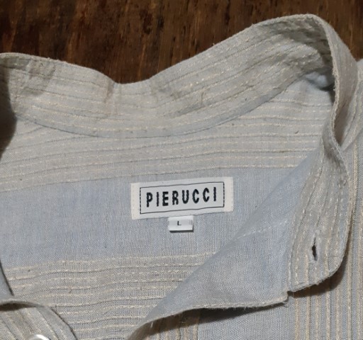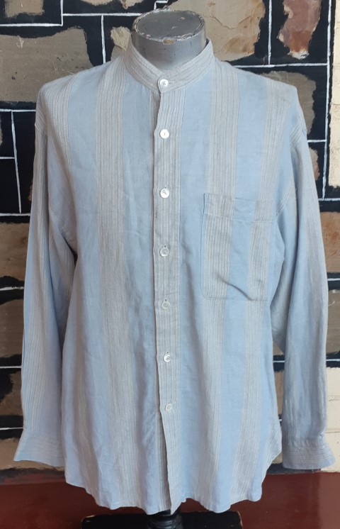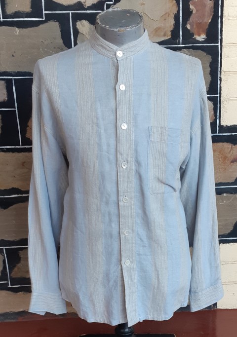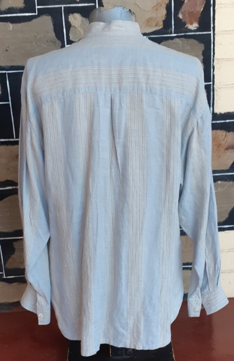 Nero Collar shirt, linen, 1980’s, pale blue/cream by ‘Pierucci’