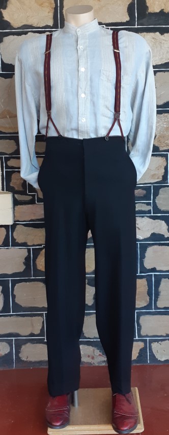 In the gallery we have shown how to get a 1930’s vibe from this shirt by teaming it with Tuxdeo pants and braces, they are not included.