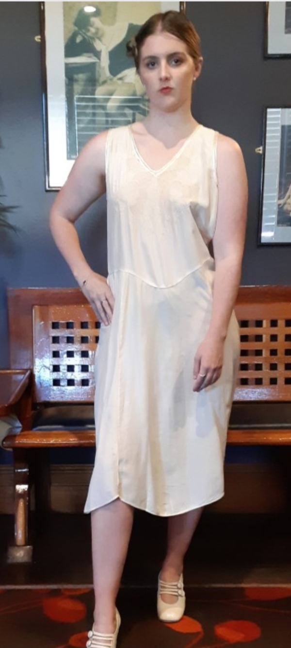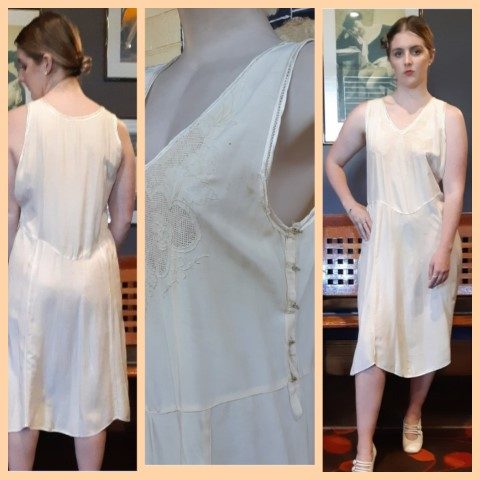 Original 1920’s Nightgown, Raw Silk, Cream, size 12-14