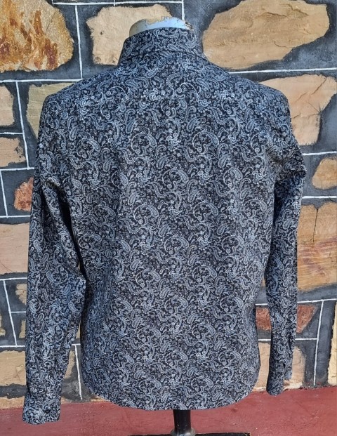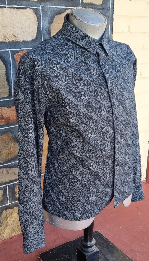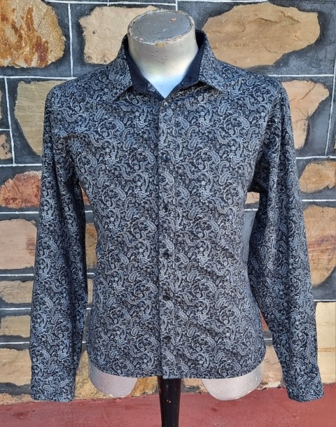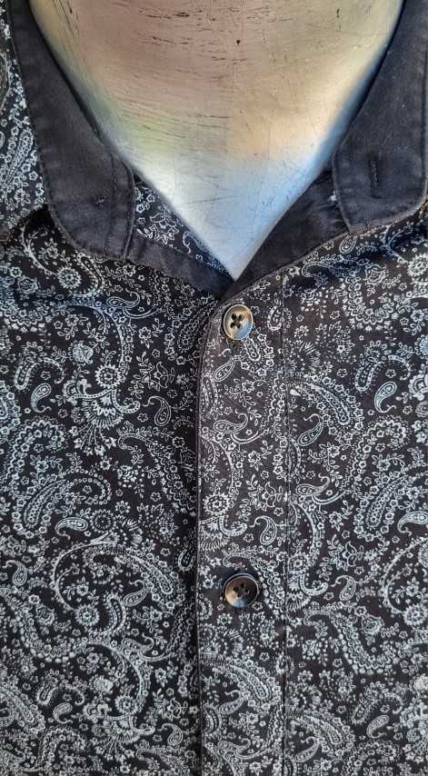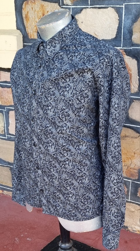 Paisley Print Cotton Shirt, black, by ‘JA Signature Collection, size L short.