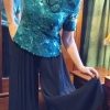 They can be worn as a dressy look with an evening top or a more casual look, like our polka-dot shirt, very Katherine Hepburn, 0r an Evening top, like the green one in the main photo, these tops are not included.