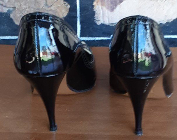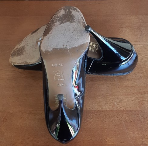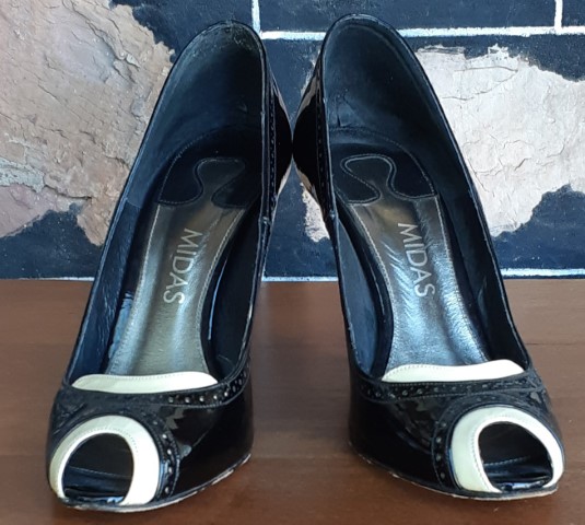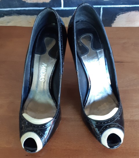 Patent Leather Peep Toe heels, black/cream, by ‘Midas’ size 39.5
