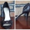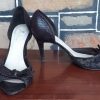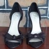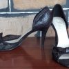 Peep-toe heels, Black synthetic snake fabric by ‘Pierre Fontaine’.