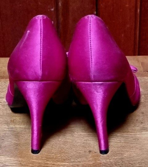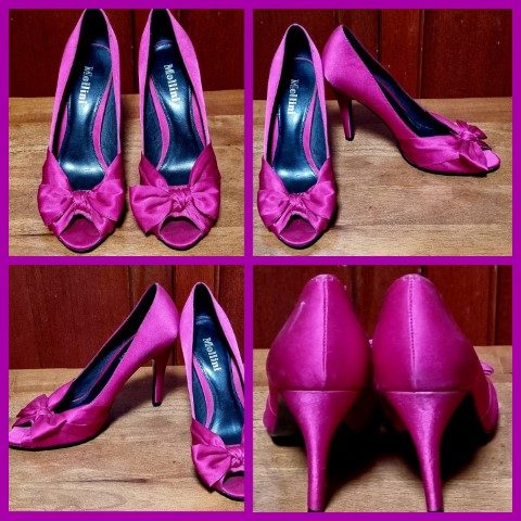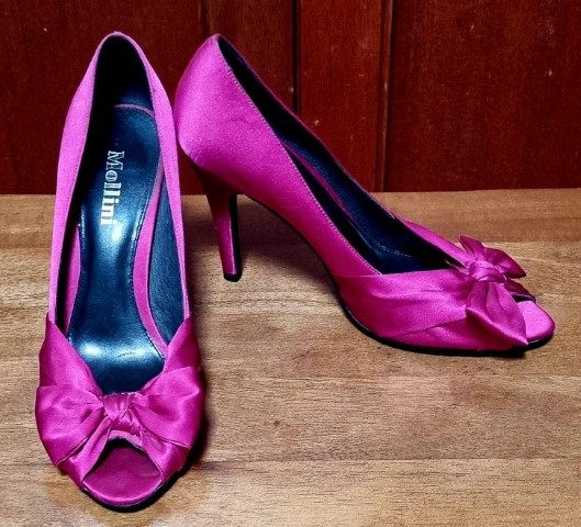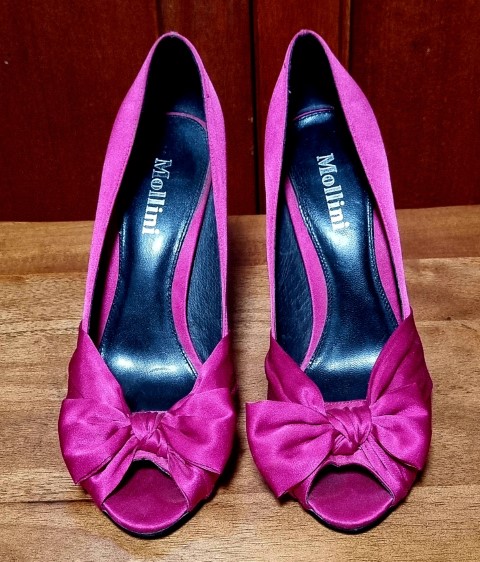 Peep-toe shoes, by ‘Mollini’, Hot Pink Satin, size 38