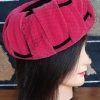 Pill Box Hat, pink /black velvet, with netting, by ‘Robit Hats’, size 53cm circumfirence