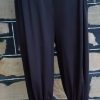 The pants are jersey fabric, elastic waist, can go from 34″ to 38″, length is 37″.