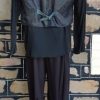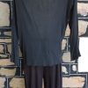 The shirt is cheesecloth, black, freshly laundered, good condition. The chest is 49″ and length is 30″