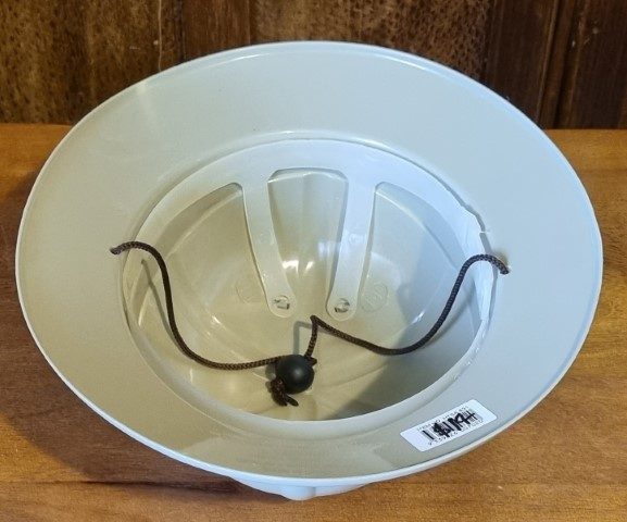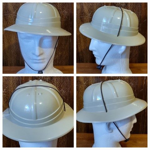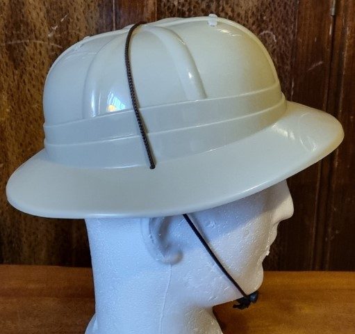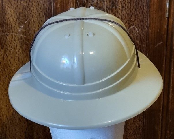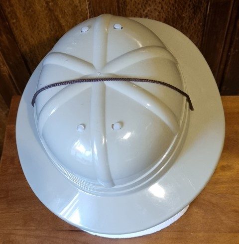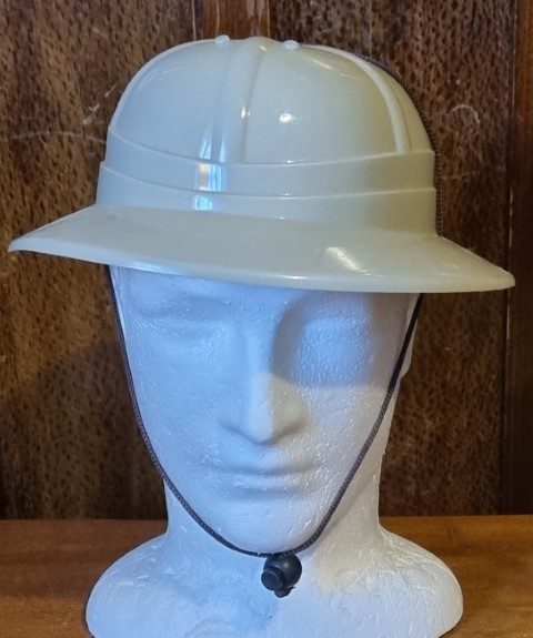Pith Helmet, Khaki Plastic, by ‘Sweidas’, one size, removable and adjustable inner, for sizing.