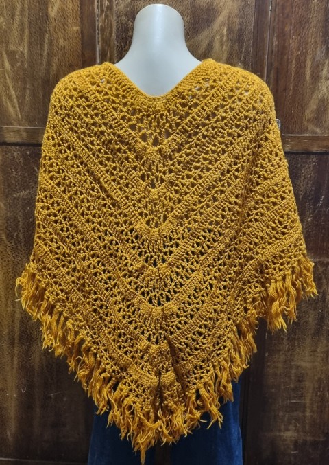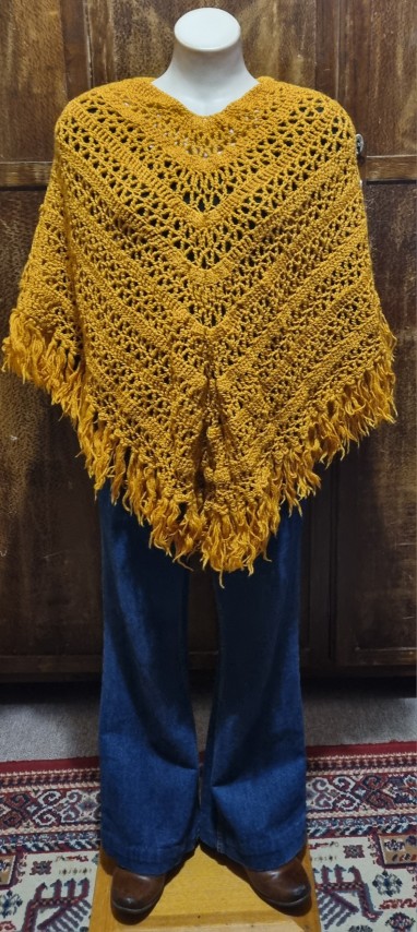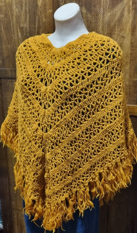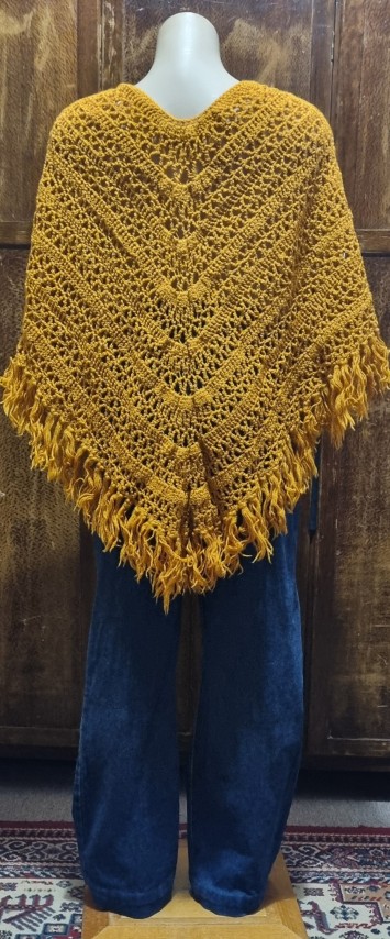 Poncho, Crochet with fringing, Mustard, acrylic.
