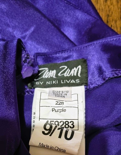 Prom/Pageant Dress, Purple Satin, by ‘Niki Livas, Zum Zum’, size 9-10