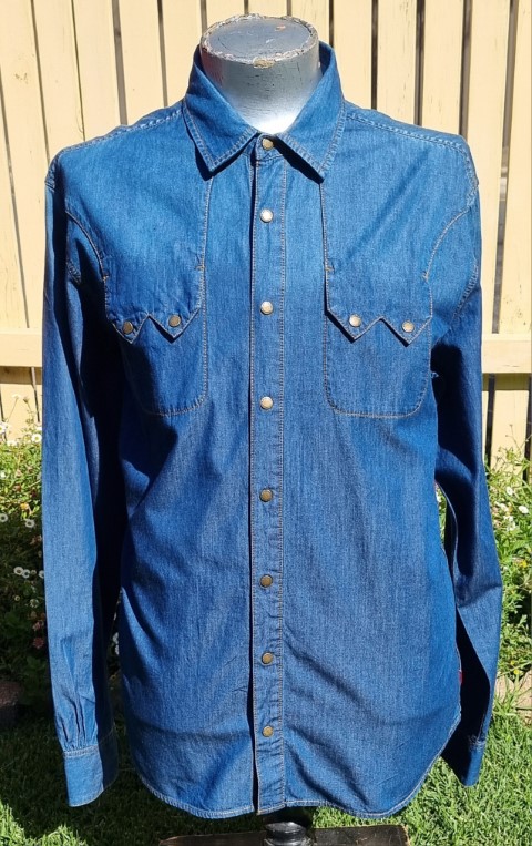 R.M. Williams, Classic Studded Chambray Denim Shirt, size XXL