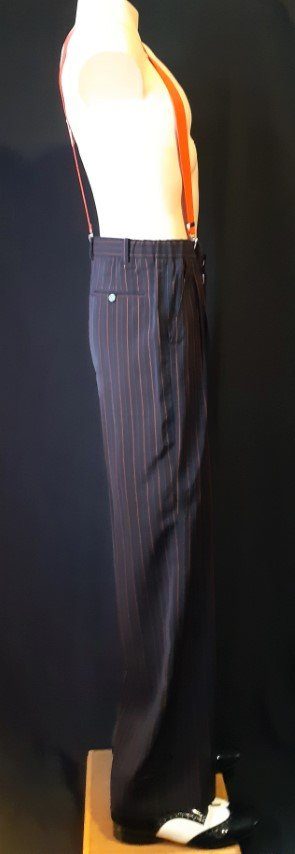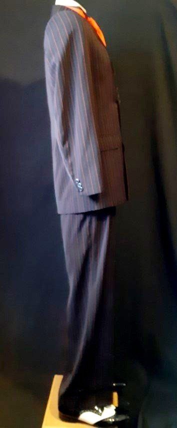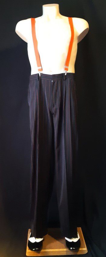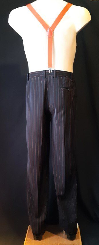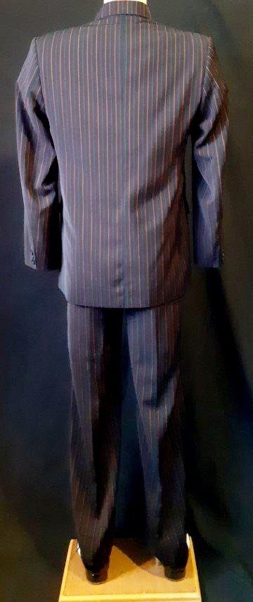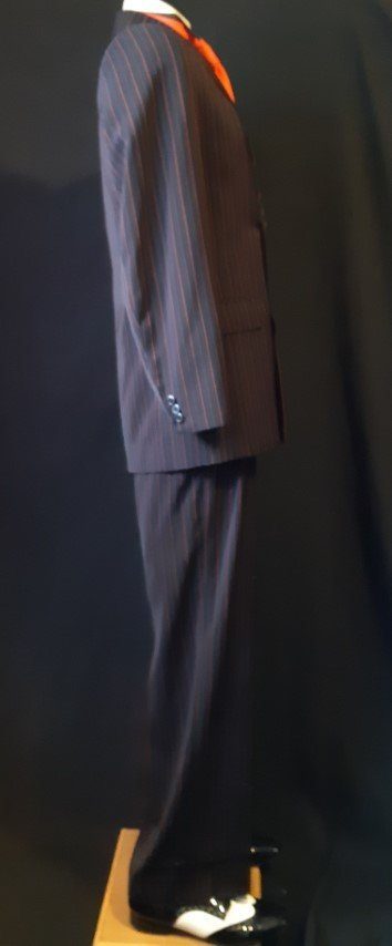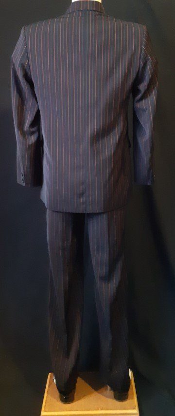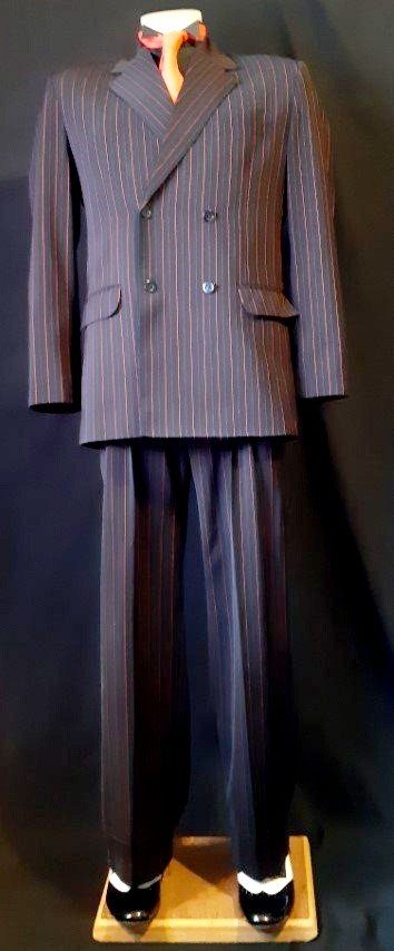 Red/ black pinstriped double breasted ‘Gangster Suit’, poly/cotton