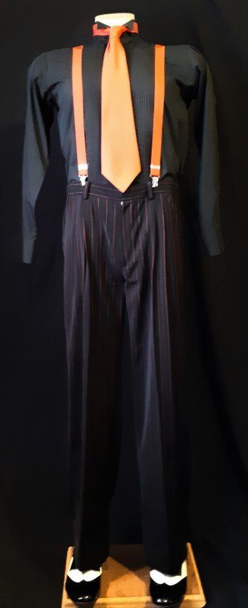 In the gallery we have shown how you can make it look gangster with the black winged tip dinner shirt, spats and plain red tie, these are not included.