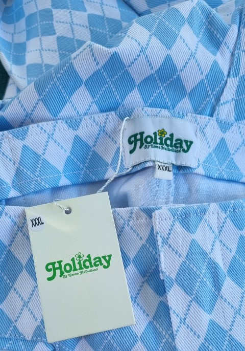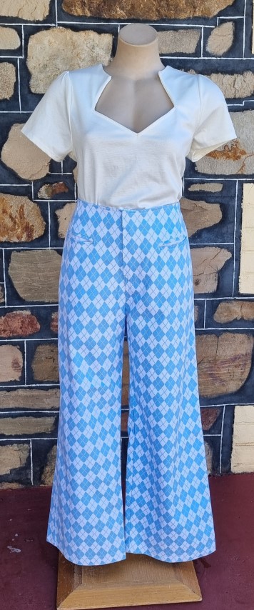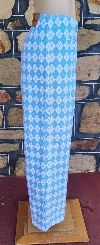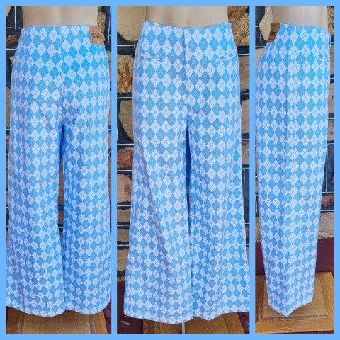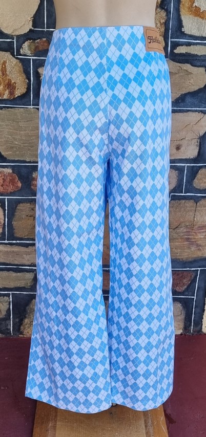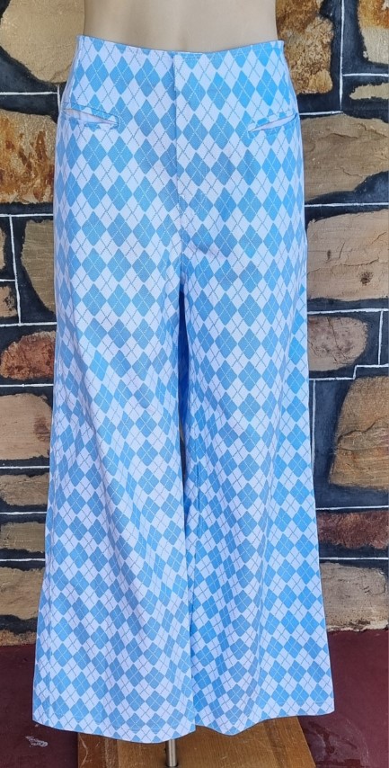 Retro-inspired, Kimono Pant, by ‘Emily of Mulholland on Holiday’, cotton, blue Argyle Print, size XXXL.