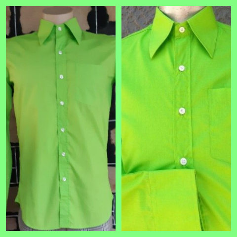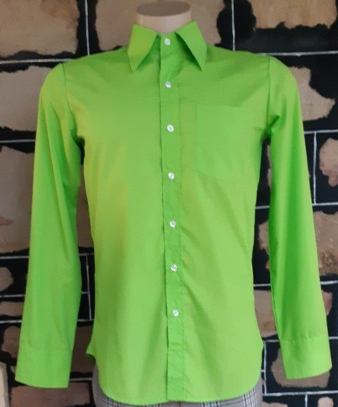 Lime green, tapered fit.