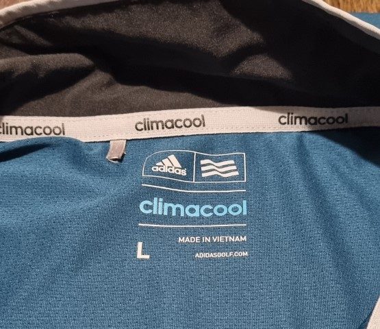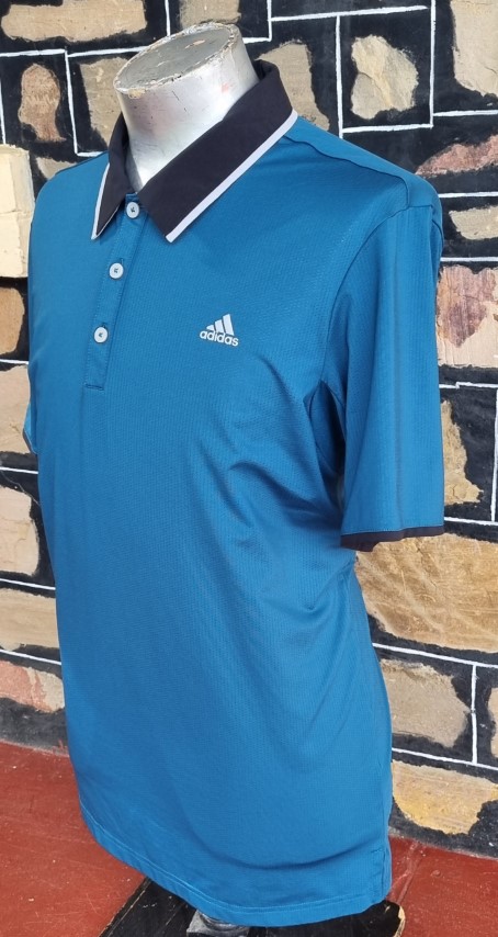 Men’s Polo top, by ‘Adidas’, teal, ‘Climacool’, polyester, size L