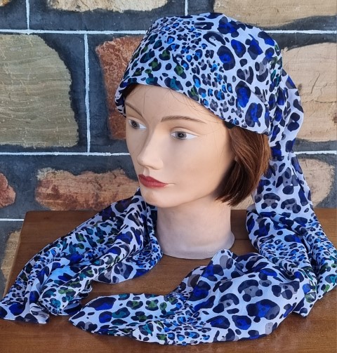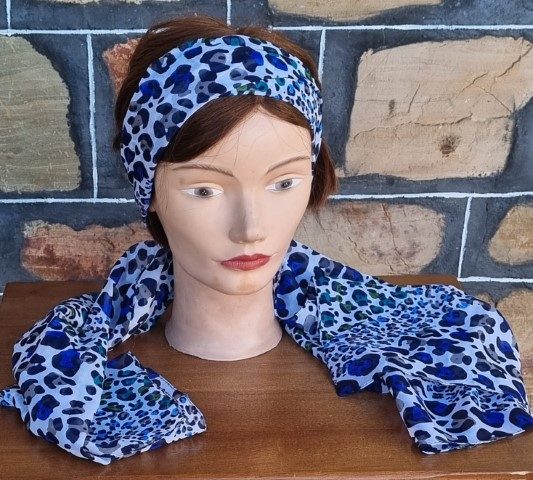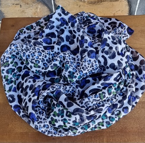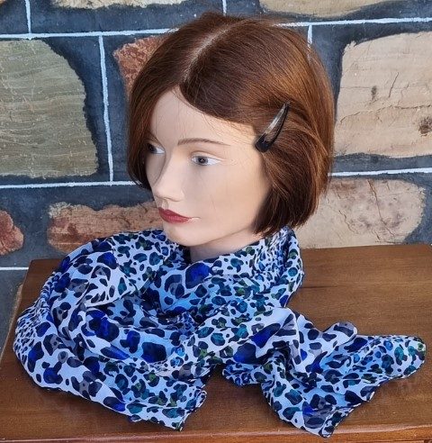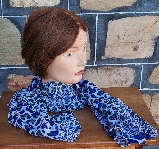 Retro Print Scarf, Blue tones, polyester, oblong, 51cm x 177cm
