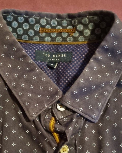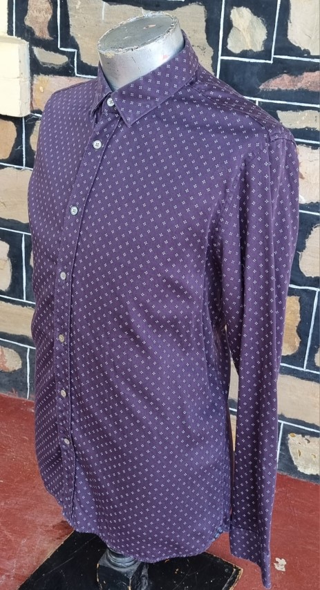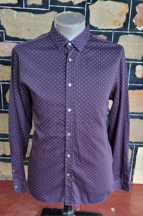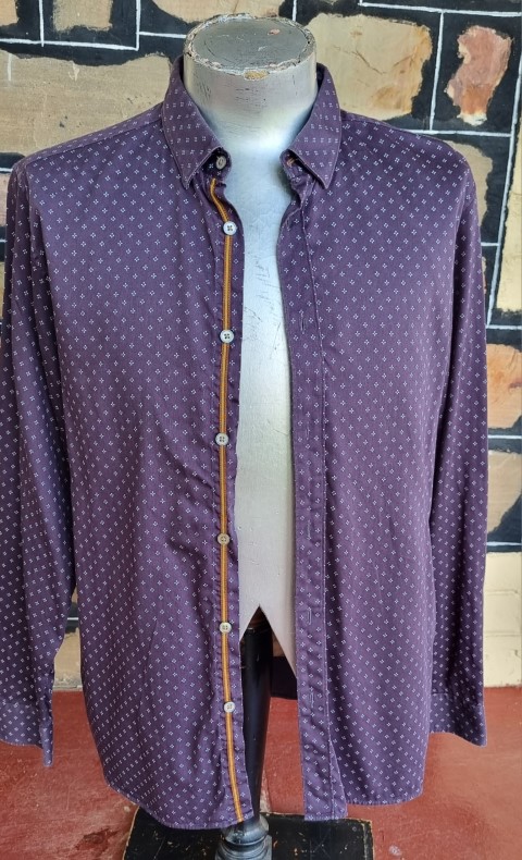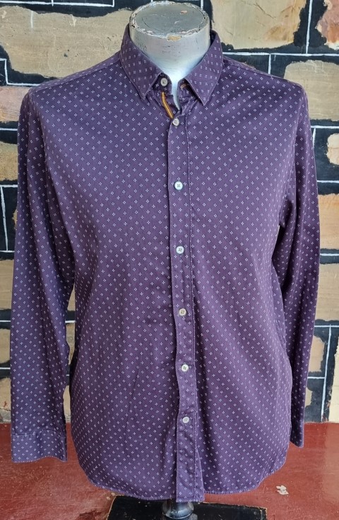 Retro Vibe Casual shirt, cotton, plum printed, by ‘Ted Baker’, London, size M