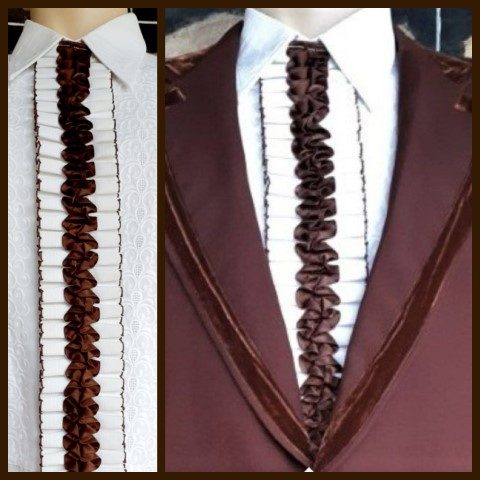 Shown in the main photo with a dinner shirt and suit, completes a dressy 70’s look.