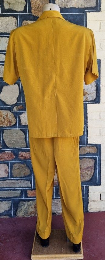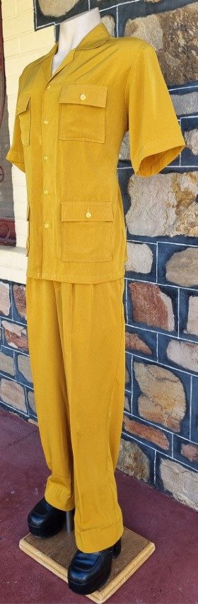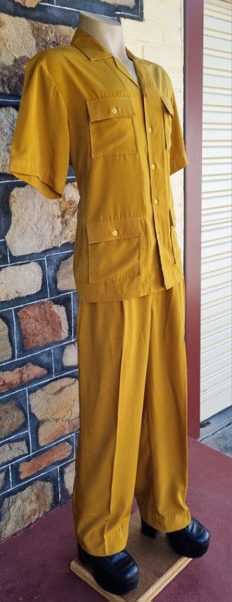 This suit is a very good copy of original Safari Suits, except that the pants are more of an 1980’s cut, rather than 1960’s flat front, or 1970’s flared ones. It still looks great though!