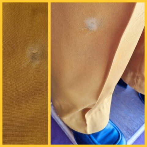 Freshly laundered and in very good condition, except for some flaws in the pants. They must have been taken in at some stage, so this has left very tiny machine holes, at the back of pants and waistband. I have mended the larger holes, so there is nothing to worry about. There is also a tiny patch on the lower left leg where perhaps a stain was rubbed out, see all the photos in the gallery. So, for these reasons, it has been reduced. It will need ironing, make sure to use a low setting so it doesn’t singe.