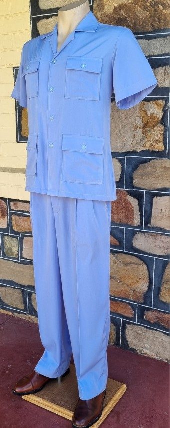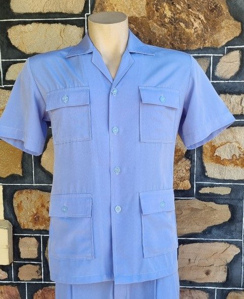 Safari Suit, Sky Blue, Microfiber, by ‘King’s Fashion Patong’, size L.